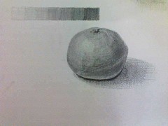 3度目のみかんです。どうもうまくかけません。投影とかに気をつけたのですが、まだ輪郭にそっているような気がします。いくつみかんを描いてもなかなか上達がないので少し落ち込んでいます。 トーンはもっと自然に変化させたほうがよいのでしょうか? |