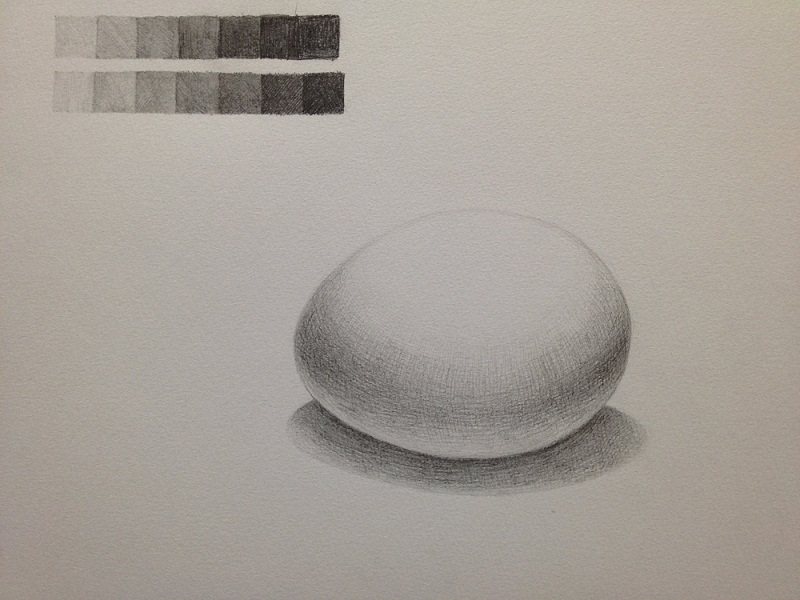 球体を描いたデッサンを見せてください。 具体的にはその時に。(タッチの使い方など)