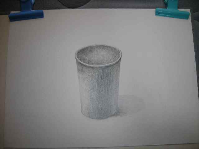 机の影を見ると左側から光があたっているようですが、コップの側面や内側のトーンではそれがわかりにくくなっています。