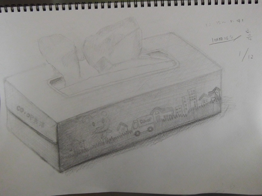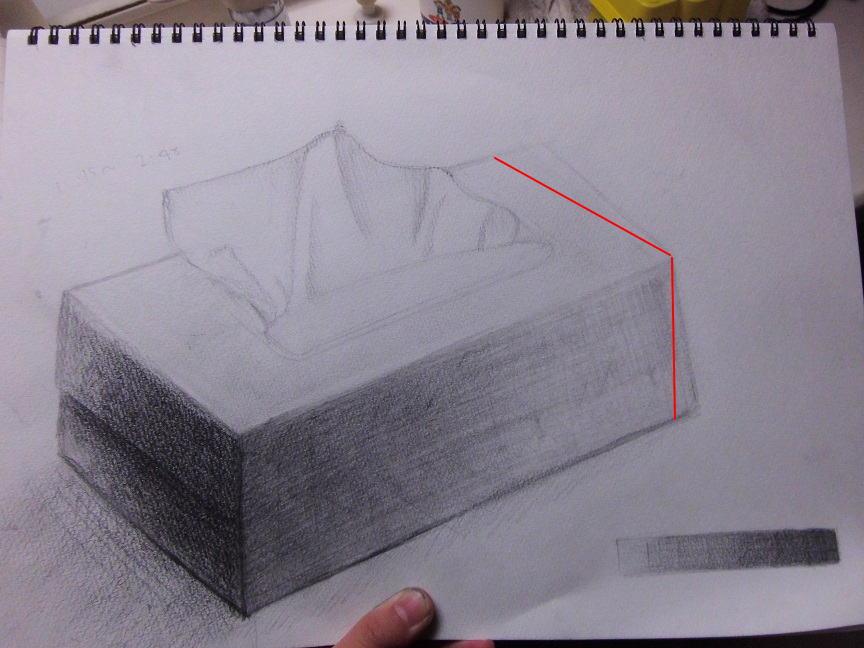 早速ですが私の苦手な形のテッシュBOXを描いてみました
