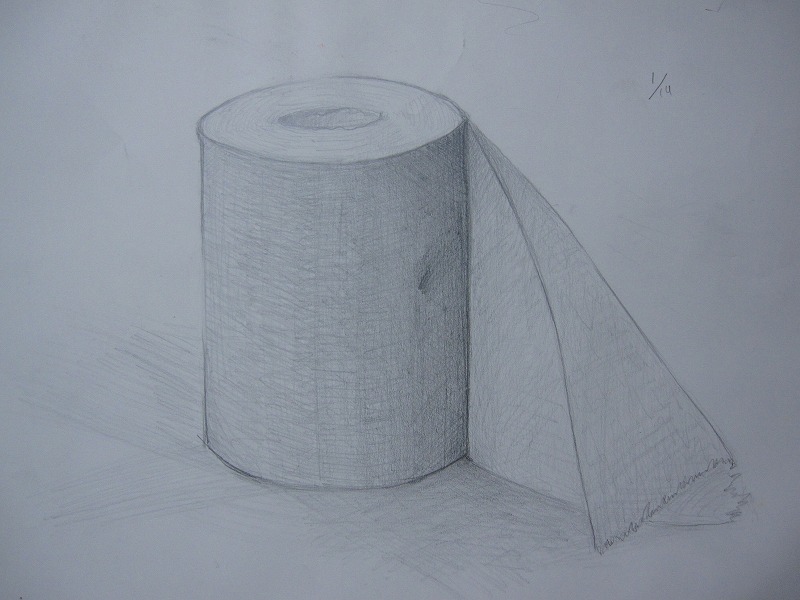 早速円柱の練習しました!トイレットペーパーで、一応30分で描けるようにしました