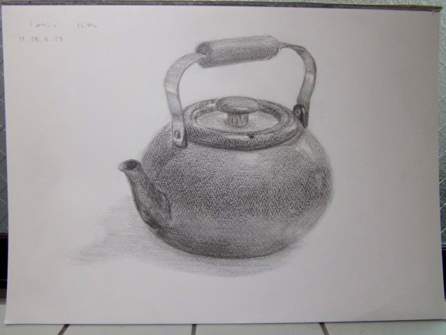 さっそくですが、今日は気分転換にヤカンを描きました。