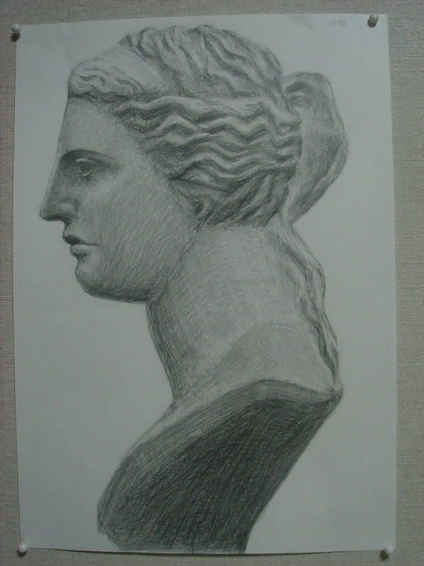 頬など、「石膏」の感じが描けているところがいいです。