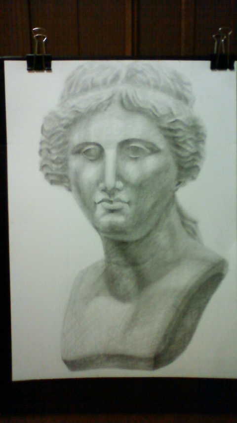 いいデッサンです。 耳が横に開きすぎかと思いますが、それ以外はOKとしておきましょう。 これで不合格になるならかなりレベルの高い高校だということになりますね。 入試はいつでしたか? |