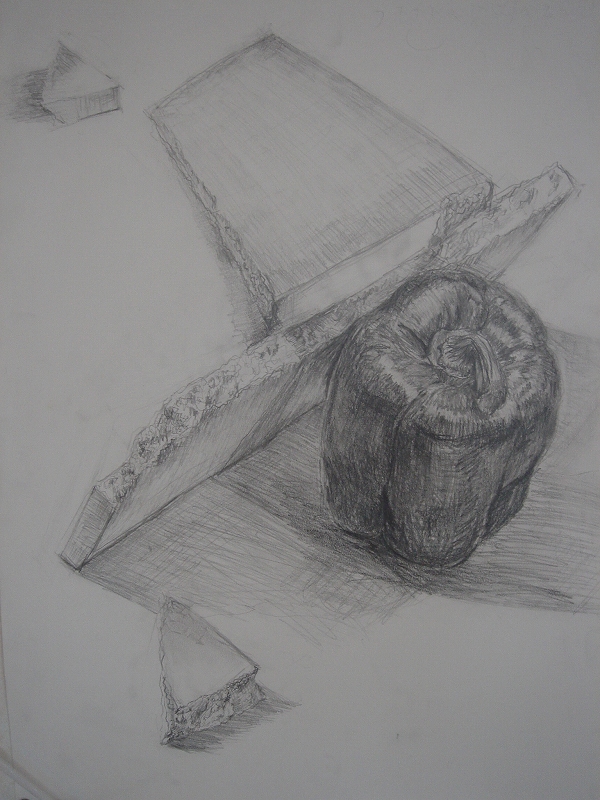 私の受験する高校の去年の課題が果物と発泡スチロールだったので描きました。