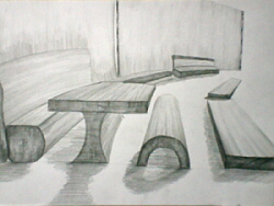 これではテーブルとベンチのデザインです。出題が要求しているのは空間(教室)のデザインです。 |